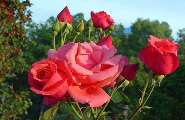 水肥管理。大花月季喜肥,尤其是喜有機肥,如廄肥、堆肥等。大花月季花期長,在其生長過程中應(yīng)注意追施化肥,以求速效,保持充足的水肥外,在花蕾期噴施花朵壯蒂靈,可促使花蕾強壯、花瓣肥大、花色艷麗、花香濃郁、花期延長。